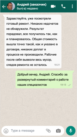Окончательную стоимость ремонта можно узнать у менеджера фирмы по телефону после обсуждения деталей ремонта и выезда замерщика на объект.